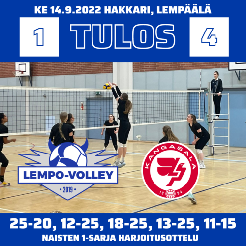 N1 HARJOITUSOTTELU: LEMPOVOLLEY – LP KANGASALA 1-4 (25-20, 12-25, 18-25, 13-25, 11-15)