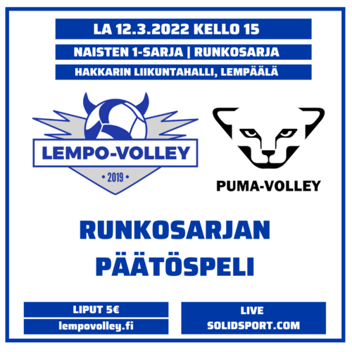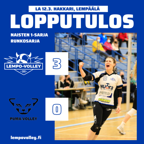Lempo-Volley päätti runkosarjan 2021-2022 tyylikkäällä kotivoitolla helsinkiläisestä PuMasta lauantaina erin 3–0 (25–16, 25–22, 25–23). Lempo haki yhtä sarjapistettä varmistaakseen kotiedun ja se myös saatiin.
