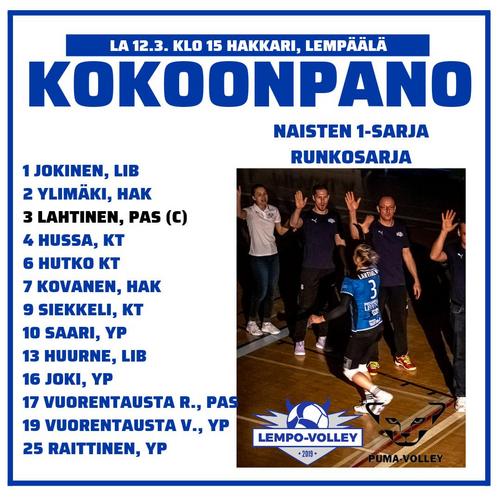 Lempolle riitti yksi sarjapiste kotiedun varmistamiseen ja pitkän tauon ja 2–0-johdon jälkeen Lempon päävalmentajana Jani Huurne muuttikin rosteriaan isolla kädellä: Veera Vuorentausta tuli yleispelaajaksi Neea-Maria Joen kanssa, Venla Raittinen siirtyi hakkuriksi, Pinja Siekkeli tuli keskitorjujaksi ja Rita Jokinen liberoksi.