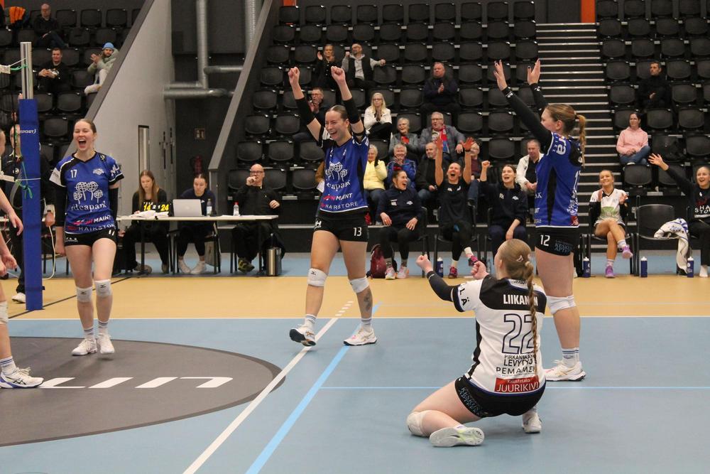 PuMa: Emma Pöllänen, Sara Aito, Oona Kohonen, Emiliina Heimala, Nella Haatainen, Ella Lahdes ja libero Milja Henriksson