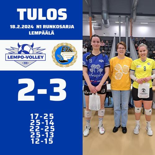 N1 RUNKOSARJA LEMPO-VOLLEY – TAPANILAN ERÄ 2–3 (17–25, 25–14, 22–25, 25–13, 12–15)