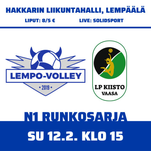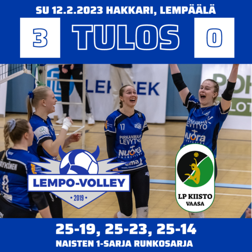 N1 RUNKOSARJA: LEMPO-VOLLEY – VAASAN KIISTO 3–0 (25–19, 25–23, 25–14)