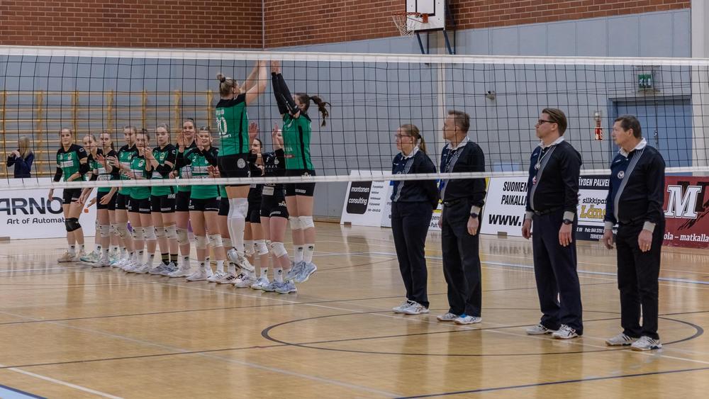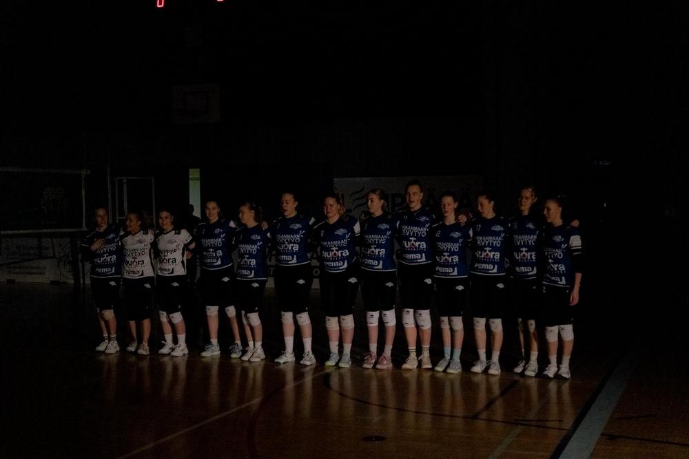 Kiisto: Tiia Heikkinen, Ilona Raitis, Sabina Nylund, Silja Arohonka, Meri Törmä, Michaela Bajnaková ja libero Janika Kaski