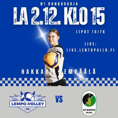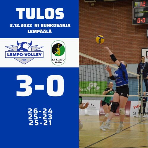 N1 RUNKOSARJA LEMPO-VOLLEY – VAASAN KIISTO 3-0 (26-24, 25-23, 25-21)