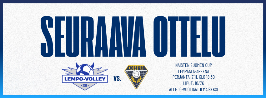 Perjantaina 7. marraskuuta Lempo kohtaa Suomen Cupin 2. kierroksella Mestaruusliigaa pelaavan Oriveden Ponnistuksen. Peli alkaa Lempäälä-areenassa kello 18.30.