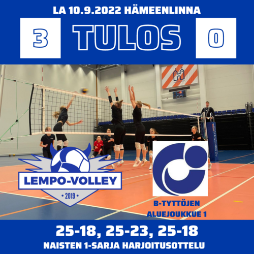 Lempo-Volleyn naisten 1-sarjajoukkue pelasi kauden ensimmäiset harjoituspelit lauantaina 10. syyskuuta. Lempo oli mukana Hämeenlinnasa turnauksessa, jossa pelasivat myös Lounaisen alueen B-tyttöjen kaksi aluejoukkuetta.