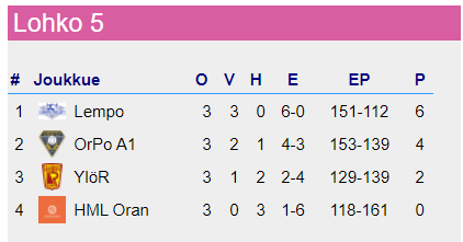 Lohkon kakkonen oli OrPo, kolmas Ryhti ja neljäs Hämeenlinna.