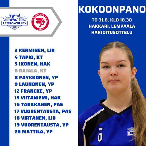 Lempo-Volleyn naisten 1-sarjajoukkue aloitti kauden 2023-24 harjoituspelit kovalla koitoksella liigajoukkue LP Kangasalaa vastaan. Uusi kausi korkattiin Hakkarin liikuntahallissa elokuun viimeisenä päivänä.