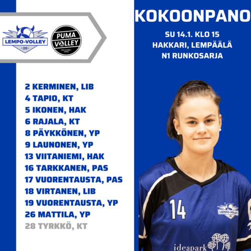 Lempo jatkaa tammikuutan tuplaviikonlopulla: lauantaina 20.1. vieraissa Kuortane ja sunnuntaina 21.1. kotona LP-Vampula.