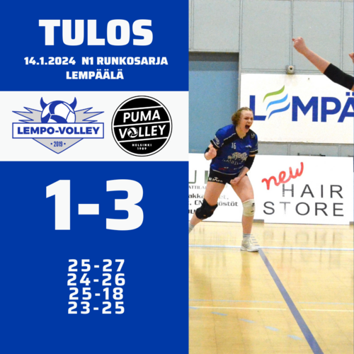 N1 RUNKOSARJA LEMPO-VOLLEY – PUMA-VOLLEY 1–3 (25–27, 24–26, 25–18, 23–25)