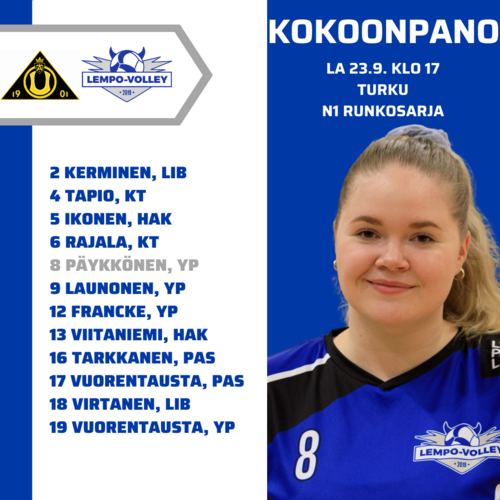 Lempo: Annastiina Tarkkanen, Adelia Launonen, Saara Rajala, Karoliina Viitaniemi, Veera Vuorentausta, Tiia Tapio ja libero Anna Kaisa Kerminen