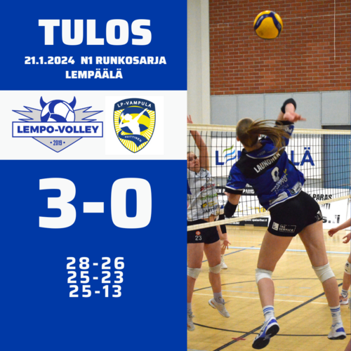 N1 RUNKOSARJA LEMPO-VOLLEY – LP-VAMPULA AKATEMIA 3–0 (28–26, 25–23, 25–13)