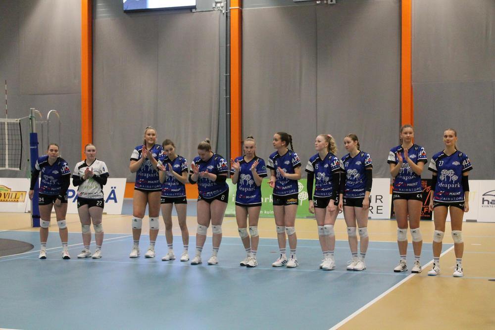 – Torjuntapeli oli hyvää, saatiin tappoja ja vaimennuksia ja vielä jäi varastoonkin. Syöttöpelissä näkyi hyvä pelirohkeus, vain muutama virhe ja välillä törkeän vaikeita syöttöjä. Meidän uhrautuva ja raapiva kenttäpuolustaminen miellytti, saatiin jatkopalloja pelattavaksi, Laine arvioi osa-alueita.