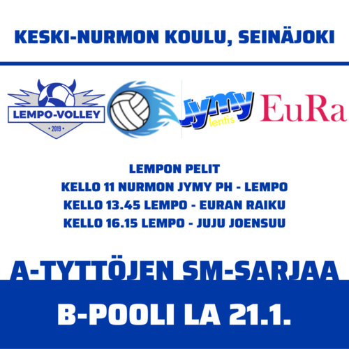 Lauantaina 21. tammikuuta Lempon A-tytöt matkaavat B-pooliin Nurmoon. Lempo kohtaa Nurmon Jymyn, Euran Raiun ja Joen Jujun. Tulospalvelu