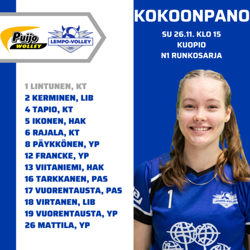 N1 RUNKOSARJA PUIJO WOLLEY – LEMPO-VOLLEY 3–1 (25–12, 21–25, 25–20, 25–22)
