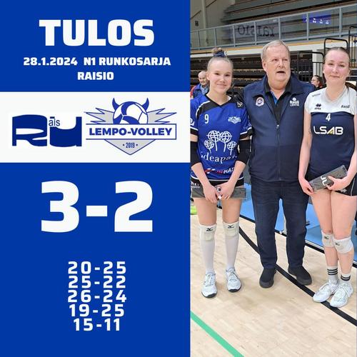 N1 RUNKOSARJA RAISION URHEILIJAT – LEMPO-VOLLEY 3–2 (20–25, 25–22, 26–24, 19–25, 15–11)
