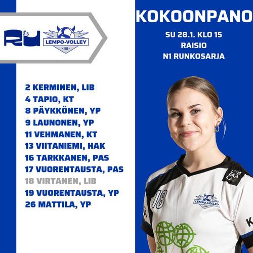 Senni Virtanen tuli pelin kuluessa Lempon liberoksi. Tehopuolella parhaana palkittu Adelia Launonen, Karoliina Viitaniemi ja Roosa Päykkönen tekivät 13 pistettä.