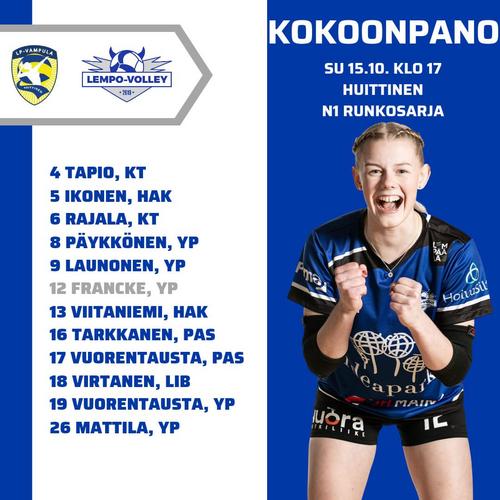 Lempon valmennus on alkukauden kierrättänyt avausseitsikkoa ja se muuttui myös tällä kertaa edellispelistä melko paljon. Lempo-valmennus sai penkille liigatason apuja, kun Akaa-Volleyn libero Jyri Niemi oli mukana auttamassa Tuomas Alataloa ja Viivi Huurnetta.