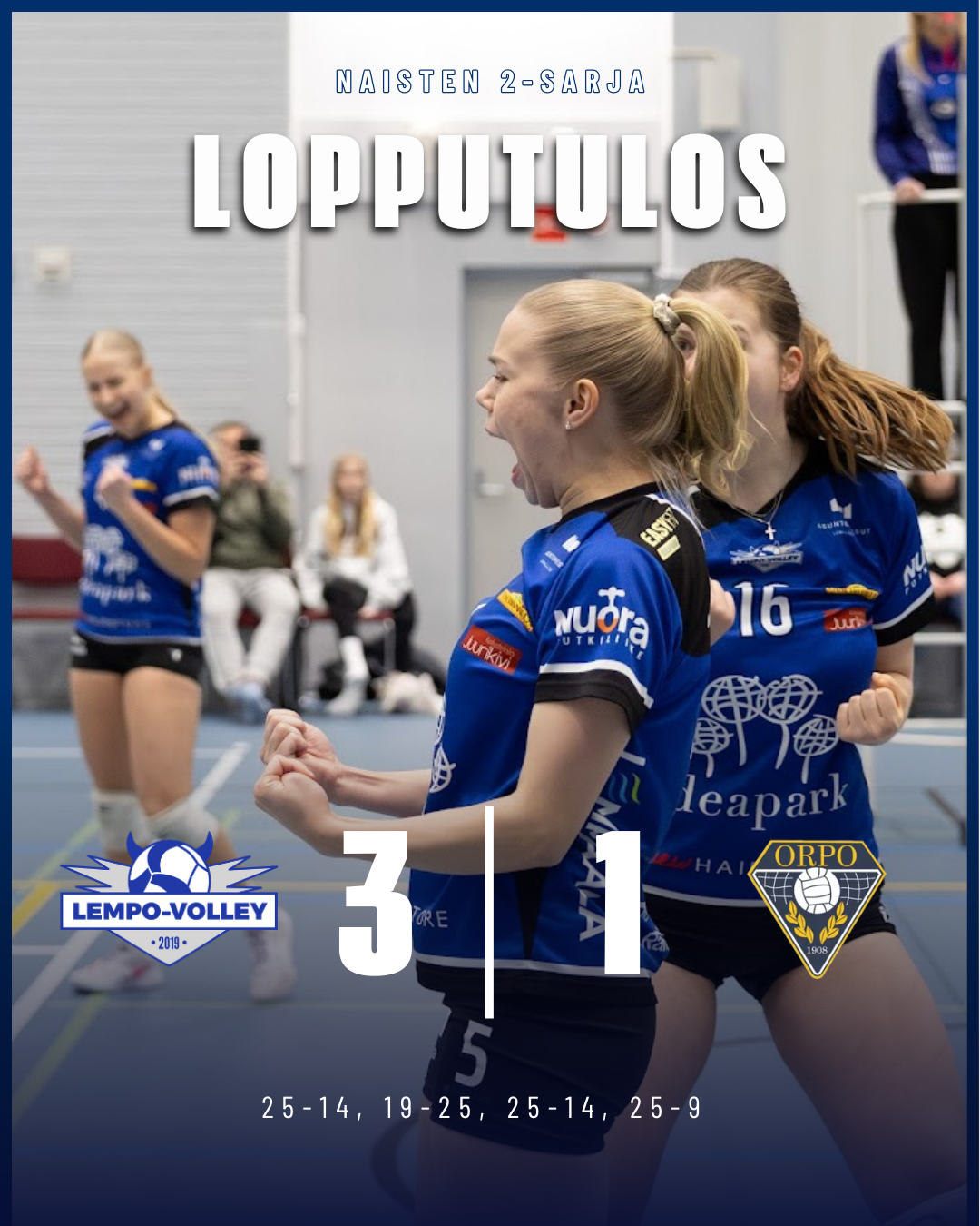 Lempo jatkoi naisten 2-sarjakauttaan sunnuntaina kotikentällä Sääksjärven liikuntahallissa. Tuloksena hieno kotivoitto: Lempo voitti OrPon 3-1 (25-14, 19-25, 25-14, 25-9). Kolme selvää erävoittoa yhden erätappion kaveriksi.