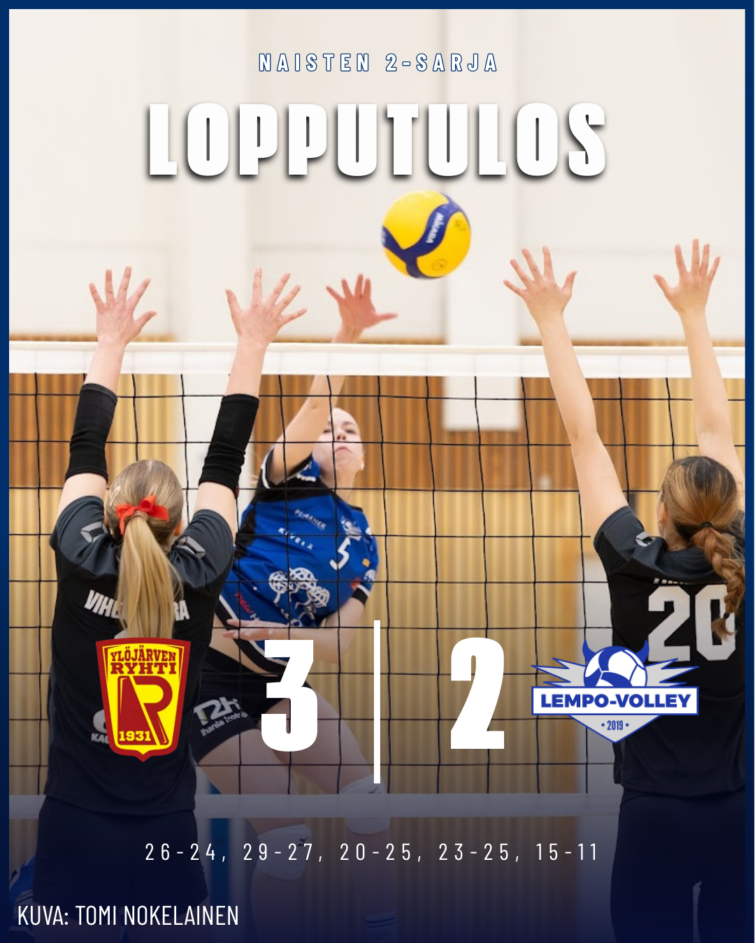 Lempo otti vakuuttavan voiton naisten 2-sarjassa sunnuntaina 16.11. Lempo voitti kotikentällään Ylöjärven Ryhdin 3-0 (25-13, 25-8, 25-13).