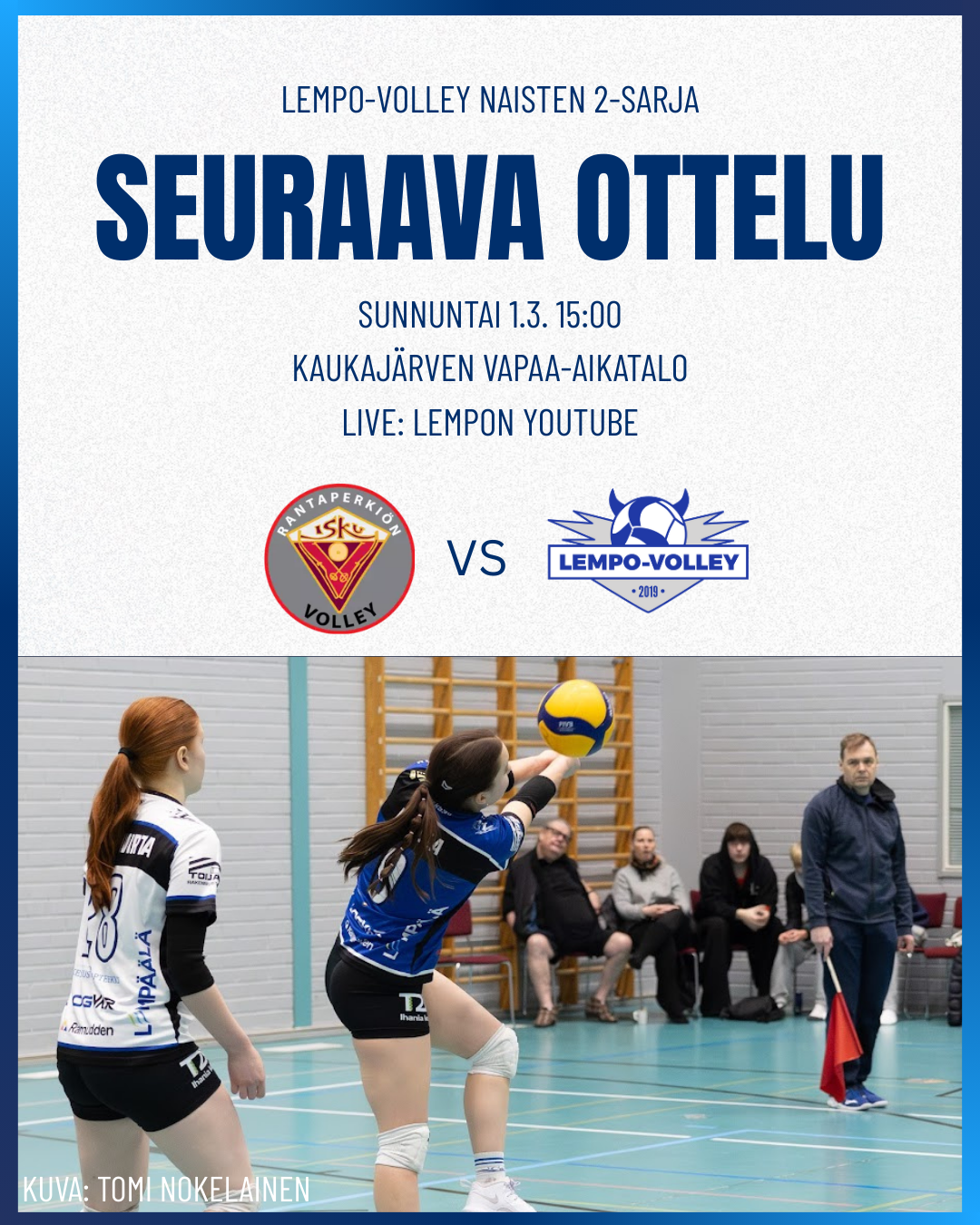 Lempo N2 otti sunnuntaina 22. helmikuuta selvän kotivoiton 3-0 (25-17, 25-13, 25-10), vastassa LP Kangasala NN. Lempon Sofia Niemisellä komea 20 pisteen ottelu!