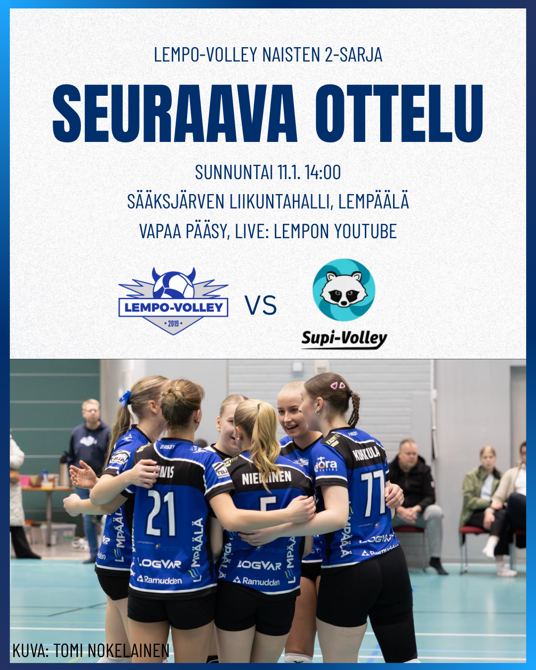 Lempo palaa naisten 2-sarjassa pelitauolta sarjapelien pariin huippupelillä! Vuoden 2026 avauspelissä vastassa on Supi-Volley Tampereelta. Ottelu pelataan Lempon kotikentällä Sääksjärven liikuntahallissa sunnuntaina 11. tammikuuta kello 14.