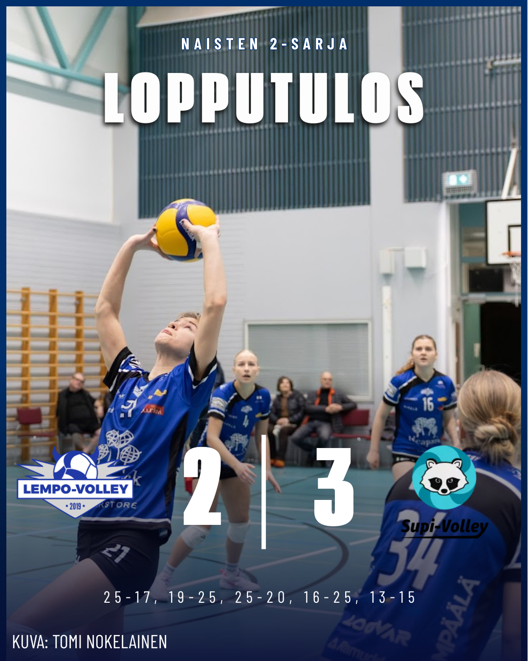 Lopulta tiukka kärkipeli päättyi Supin voittoon 3-2 (17-25, 25-19, 20-25, 25-16, 15-13). Lempo haastoi kuitenkin todella hienosti kärkijoukkuetta.