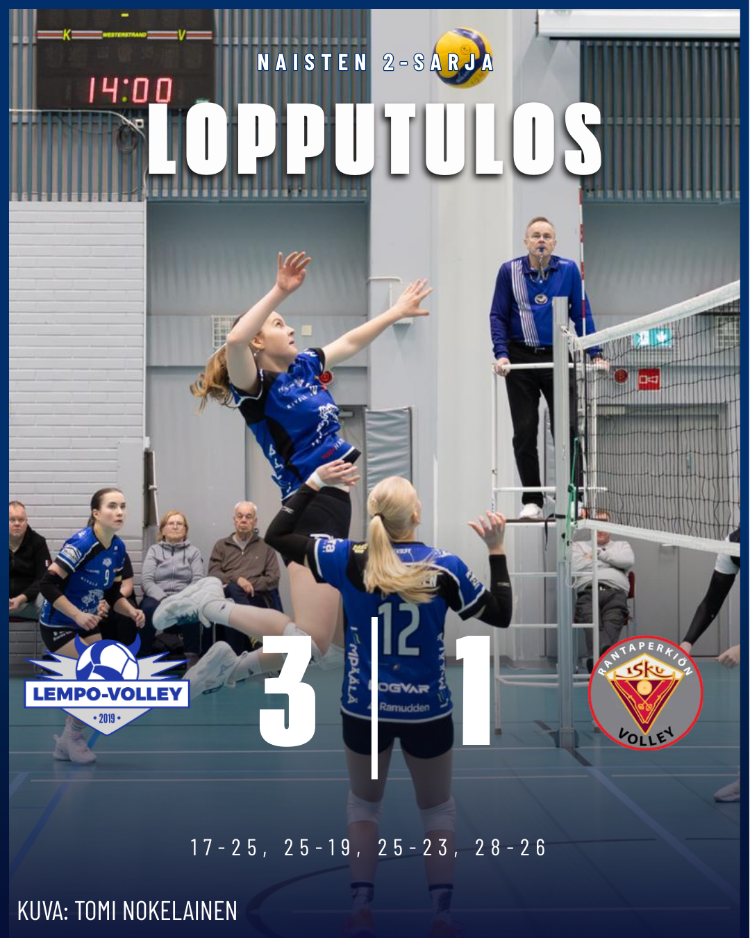 Lempo-Volley otti sunnuntaina 30. marraskuuta komean kotivoiton naisten 2-sarjassa. Lempo kaatoi sunnuntaina lohkokärjen Rantaperkiön Iskun 3-1 (17-25, 25-19, 25-23, 28-26) tiukan ottelun päätteeksi. Tappio oli Iskulle kauden ensimmäinen 2-sarjassa.