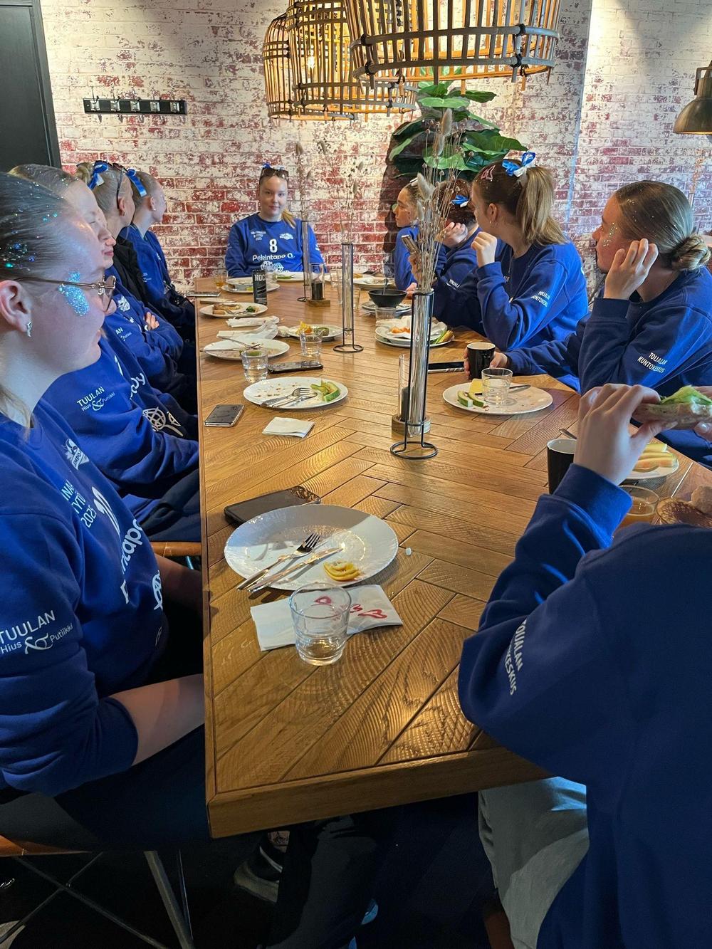 Kanapastojen jälkeen vastaan Ryhdin erittäin laadukas C-tyttöjoukkue, ekassa erässä pasta painoi vielä vatsassa mutta toisessa erässä saatiin ns. oma peli käyntiin ja ottelu 2-1 Lempolle.