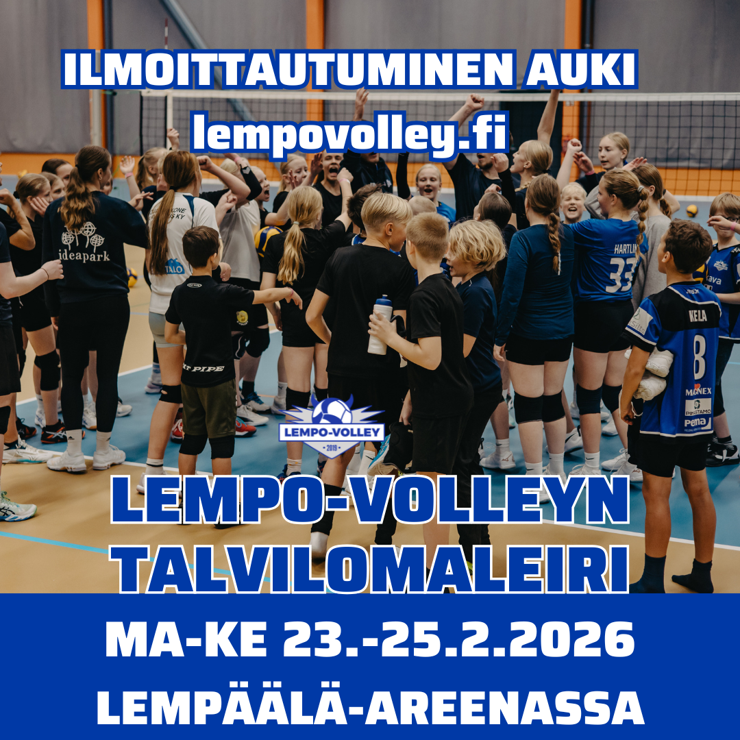 Lempo-Volleyn Talvilomaleiri pidetään maanantaista keskiviikkoon 23.–25. helmikuuta 2026 Lempäälässä Lempäälä-areenassa (osoite Ideaparkinkatu 2, 37570 Lempäälä) (Saapumisohjeet)