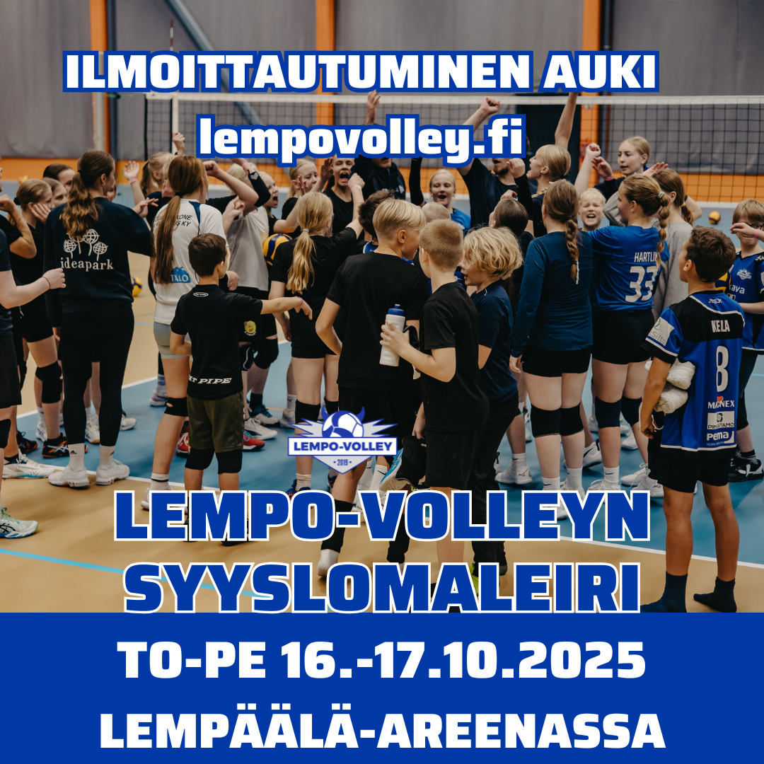 Lempo-Volleyn järjestää junioreille jo perinteisen lentopallon Syyslomaleirin, joka pidetään torstaista perjantaihin 16.–17. lokakuuta 2025 Lempäälässä Lempäälä-areenassa (Ideaparkinkatu 2).…