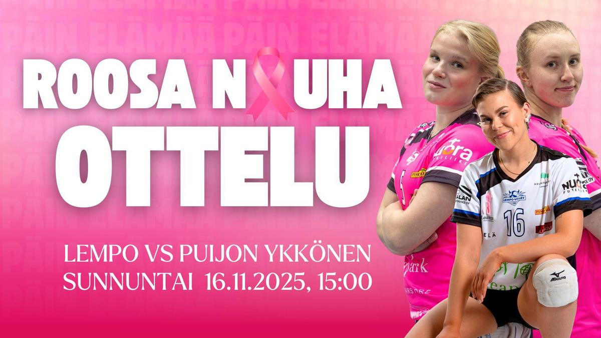 Lempo-Volley järjestää sunnuntaina 16. marraskuuta Roosa nauha -ottelun, kun Lempo-Volleyn naisten 1-sarjajoukkue kohtaa Lempäälä-areenassa kuopiolaisen Puijo Wolleyn. Peli alkaa kello 15.