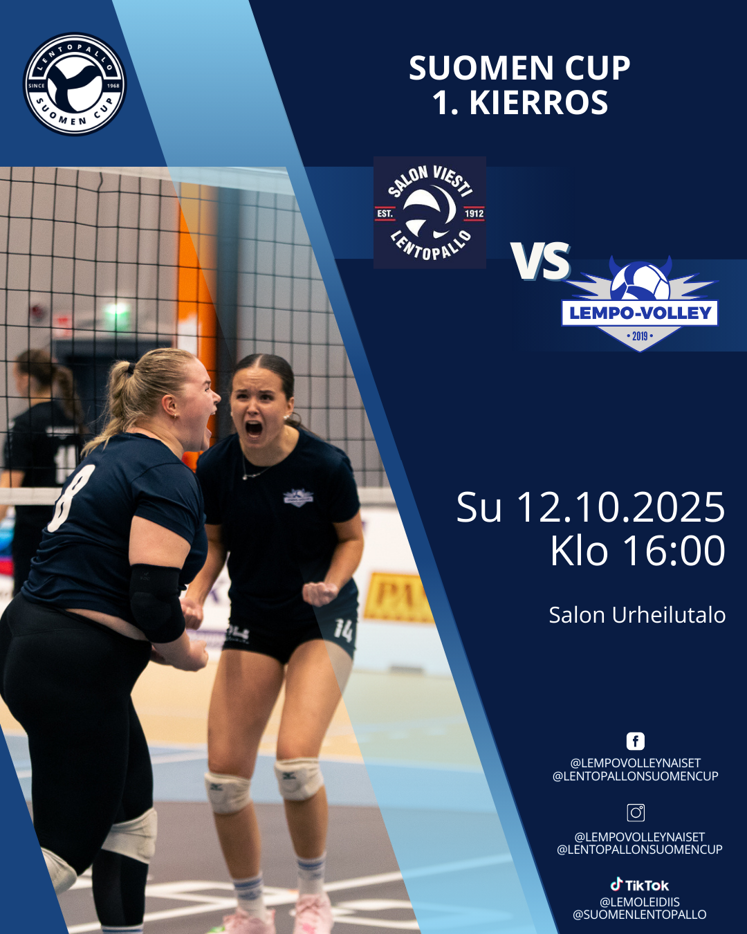 Lempo-Volleyn naisten 1-sarjajoukkueen Suomen Cupin 1. kierroksen otteluaika on vahvistettu.