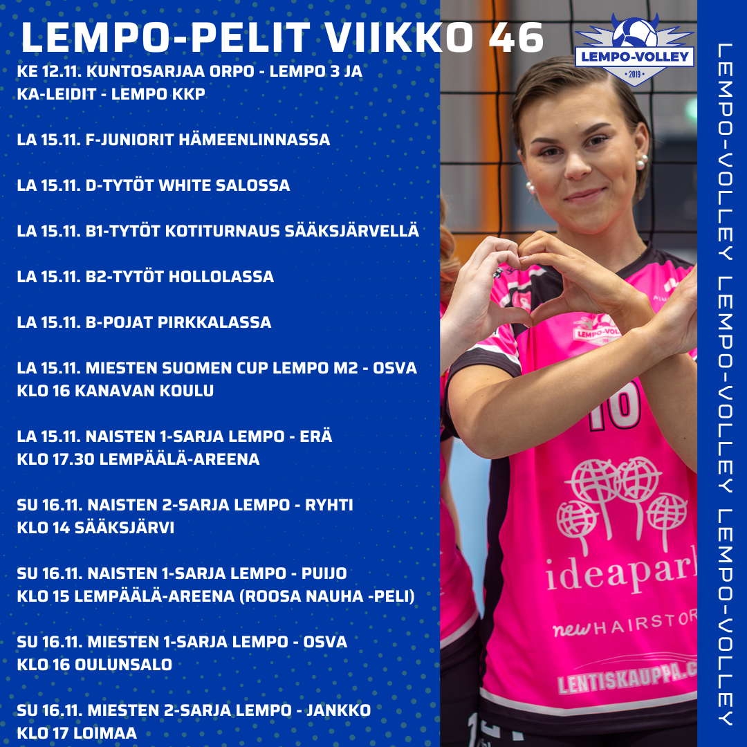 Lempon viikkoon 45 mahtuu paljon mielenkiintoisia pelejä ja turnauksia. Viikon kohokohta on perjantaina 7. marraskuuta, kun naisten Suomen Cupissa Lempo kohtaa Oriveden Ponnistuksen liigajoukkueen…
