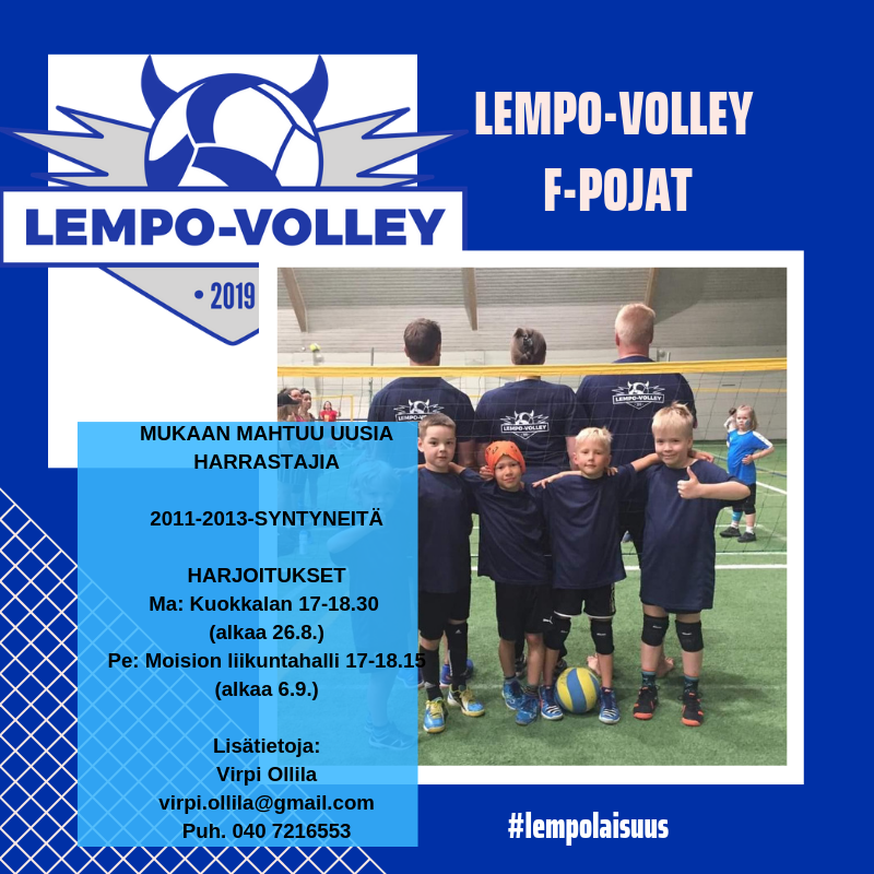 Lempo-Volleyn F-poikien joukkueeseen mahtuu vielä uusia harrastajia tulevalle kaudelle! Lentopallo on loistava harrastus nuorille: lajissa oppii joukkue- ja tiimitaitoja, liikunallisia taitoja ja saa…