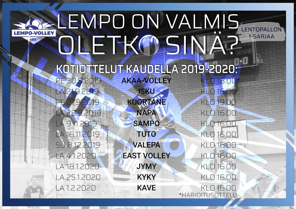 Tulevan kauden Lempo-Volleyn 1-sarjan otteluohjelma on nyt julkaistu. Sarjakausi alkaa heti tuplaviikonlopulla. Ensimmäinen peli on kotipeli paikallisvastustaja Rantaperkiön Iskua vastaan 21.…