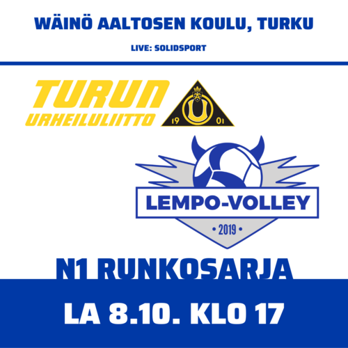 La 8.10. naisten 1-sarjaa TuUL - Lempo-Volley klo 17 Turussa