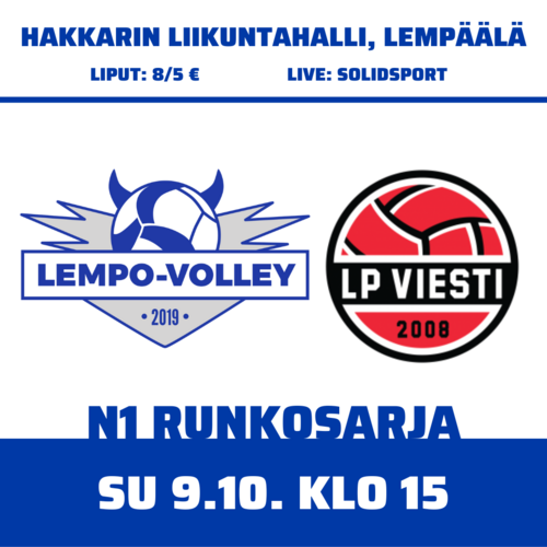 Su 9.10. naisten 1-sarjaa Lempo-Volley - LP Viesti Akatemia klo 15 Hakkarissa