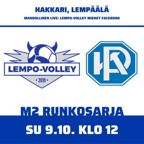 Su 9.10. miesten 2-sarjaa Lempo-Volley - KaPo klo 12 Hakkarissa