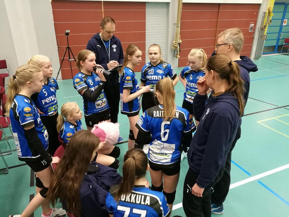 - Pelaaminen oli paljon parempaa kuin viime turnauksessa. Ensimmäisessä pelissä vastaanotto oli hyvää ja ekan pelin toisessa erässä murskattiin vastustaja syötöllä. Kolmanteen erään vaihdeltiin aika paljon pelipaikkoja ja se sekoitti pikkasen peliä. Tavoitteena on, että kaikki pelaa lähes kaikkia pelipaikkoja. Torjunta-puolustus-pelaaminen oli ehkä päivän parasta antia. Kokeiltiin pikkasen erilaista systeemiä kuin aikaisemmin ja pelaajat pystyi yllättävän hyvin toteuttamaan sitä pieniä nukahduksia lukuunottamatta. Toisessa pelissä taisteltiin, mutta se ei tänään riittäny erävoittoihin, tuumi B2-joukkueen ja C-poikien päävalmentaja Marko Panu turnauksen peleistä.