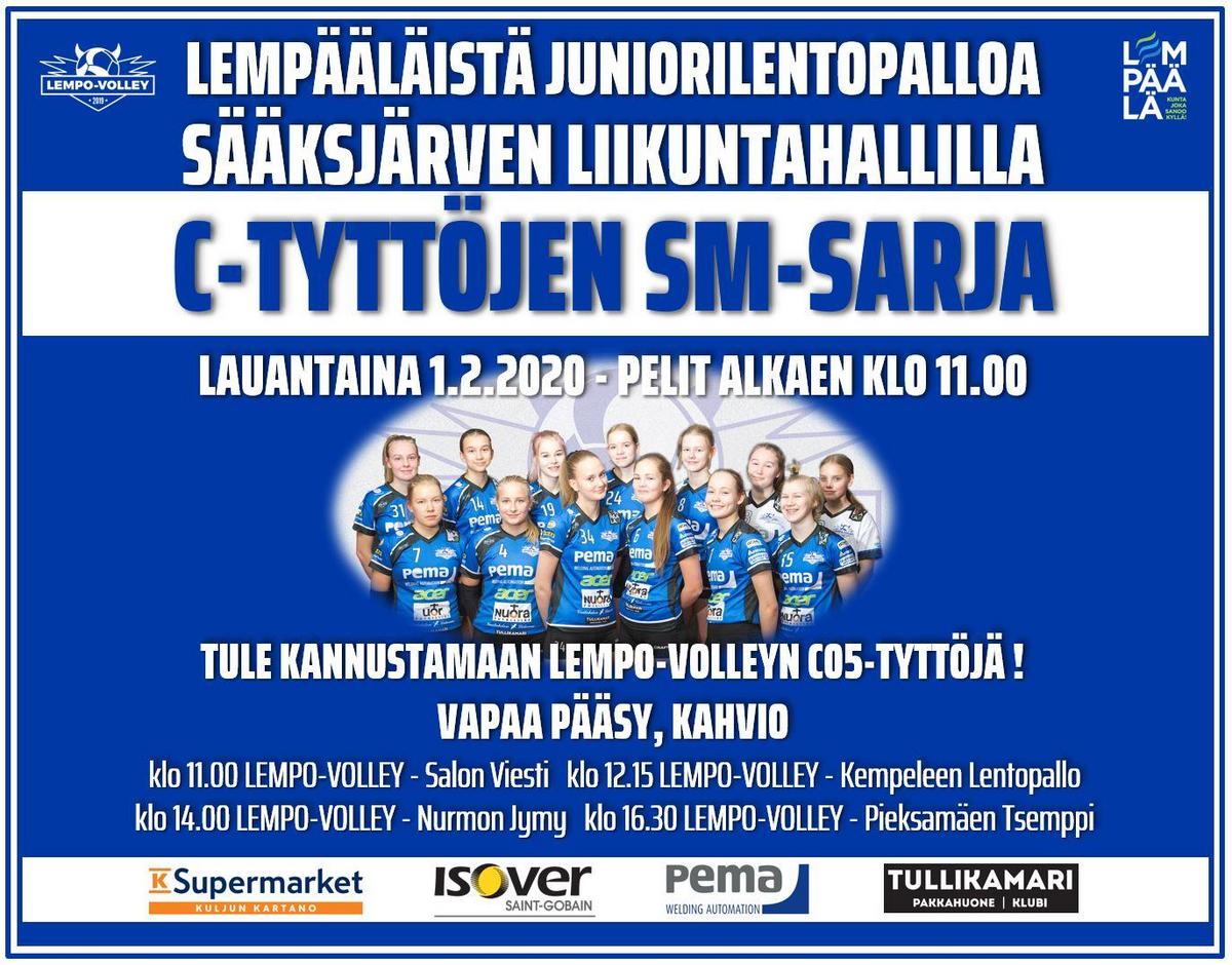 Lempo-Volleyn C05-tytöt voittivat edellisellä poolikierroksella D-poolinsa, ja nousivat C-pooliin eli SM-sarjaan. C-pooliturnaus pelataan Lempäälässä Sääksjärven koululla lauantaina 1. helmikuuta.