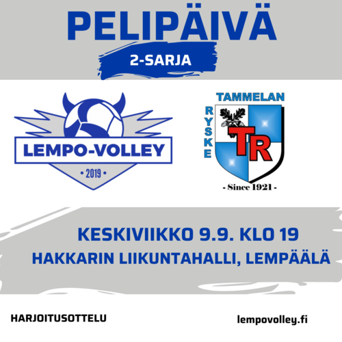 Miesten 2-sarjajoukkue aloittaa harjoituspelinsä keskiviikkona 9.9. Hakkariin saapuu kello 19 alkavaan otteluun Tammelan Ryske, joka pelaa myös 2-sarjaa, tosin eri lohkossa kuin Lempo.