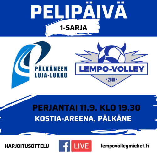 Miesten 1-sarjajoukkue pelaa jo viidennen harjoituspelinsä Pälkäneellä perjantaina 11.9. Kello 19.30 alkavassa pelissä vastassa on sarjanousija Pälkäneen Luja-Lukko. Pelistä livassa Facebookin livelähetystä. Lisää pelistä voit lukea täältä.