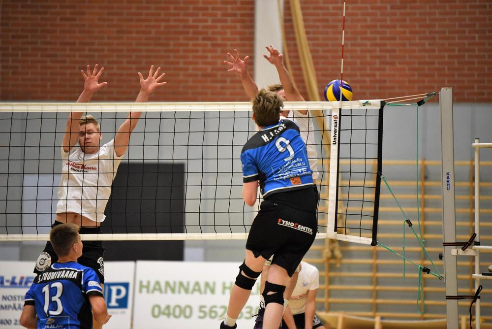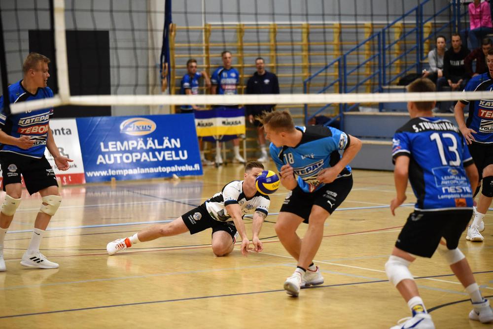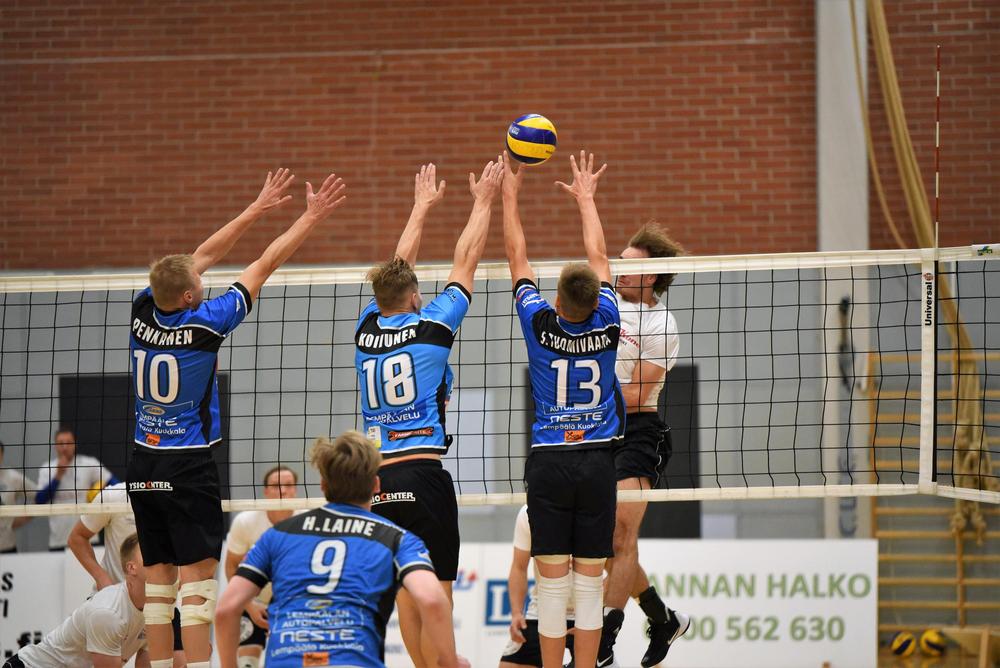Kuortaneen avaus: Leevi Väänänen, Joonas Kontio, Niko Tuusa, Jere Tikkala, Veikka Lindqvist, Miika Haapaniemi ja libero Joonatan Salpakari. Yleispelaaja Luka Marttila pelasi lähes koko pelin.
