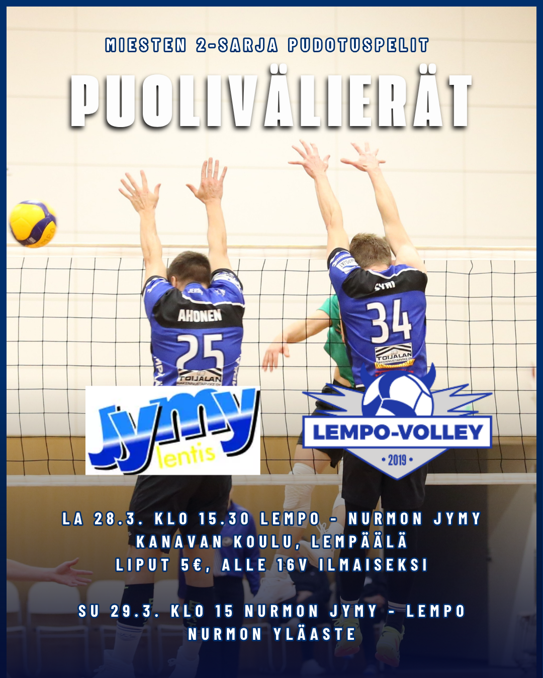 La 28.3. klo 15.30 Lempo-Volley–Nurmon Jymy, Kanavan koulu, Lempäälä