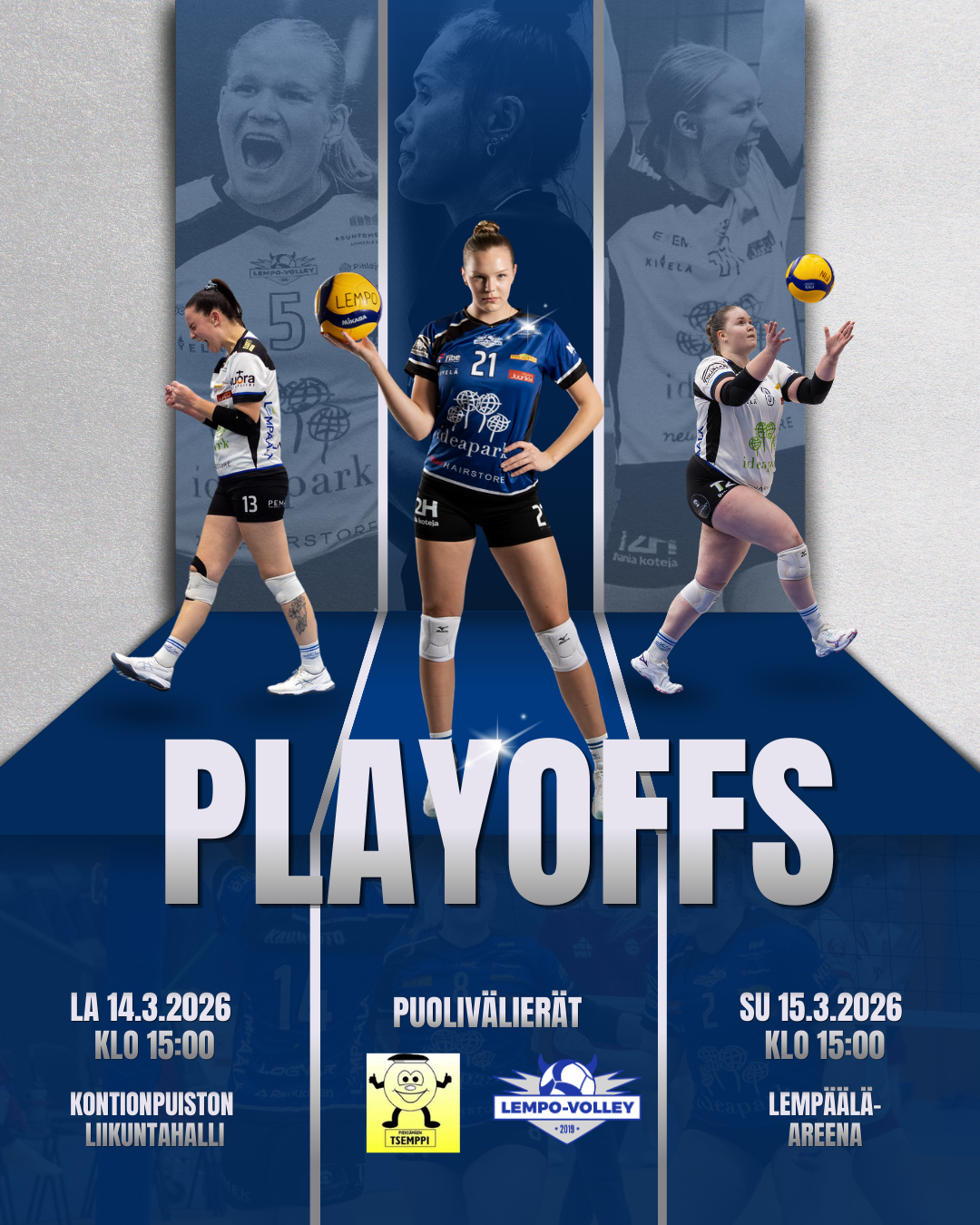 Lempo-Volley kohtaa naisten 1-sarjassa pudotuspelien avauskierroksella puolivälierässä Pieksämäen Tsempin. Lempo oli runkosarjan kolmas ja Tsemppi oli kuudes. Lempolla on kotietu puolivälierissä.