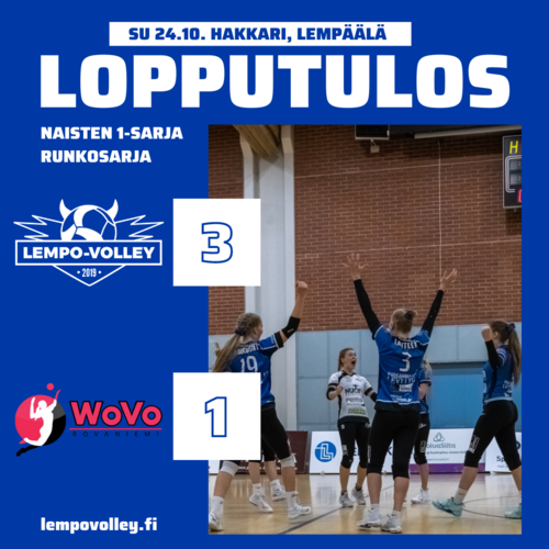 Lempo-Volley sai Hakkarin sunnuntai-illassa sen, mitä kovasti oli alkukauden hakenut: seurahistorian ensimmäisen voiton naisten 1-sarjassa. Kun neljännessä erässä ottelupallossa WoVon hyökkäys jäi verkkoon, pääsi Lempo aloittamaan voitontanssinsa.
