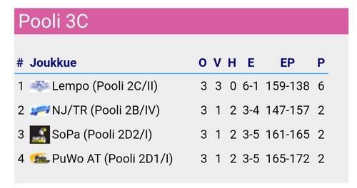 Lempon A-tytöt pelasivat Nurmossa ja hakivat komean C-poolin voiton. Kolme voittoa tarkoittaa nousua hienosti B-pooliin. Pelit jatkuvat ensi vuoden puolella neljännellä poolikierroksella. Lempolla oli mukana myös kolme B-tyttöä, sillä osa pelaajista oli lepovuorossa valmistautuen sunnuntain naisten 1-sarjan vuoden päätöspeliin.