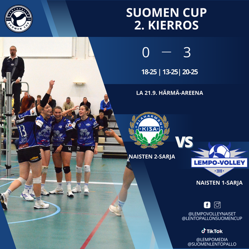 Lauantaina 21.9. Lempo pelasi Suomen Cupin 2. kierroksella Alahärmän Kisan vieraana. Lempo voitti ottelun 3-0 (25-18, 25-13, 25-20) ja jatkaa Cupin 3. kierrokselle.