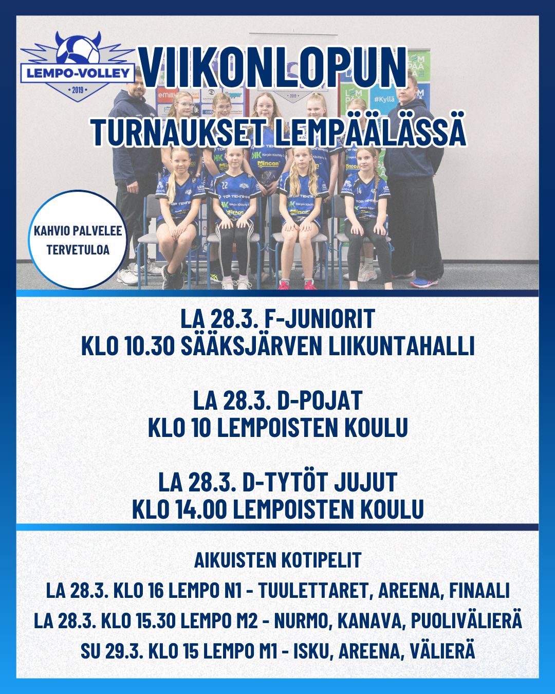 Lempo pelaa naisten 1-sarjan finaalissa mestaruudesta, miesten 1-sarjassa Lempo on välierissä. B-tytöt ja B-pojat pelaavat paikasta SM-finaaleihin. D-junnuilla on välierät ja M2 pelaa puolivälierissä.